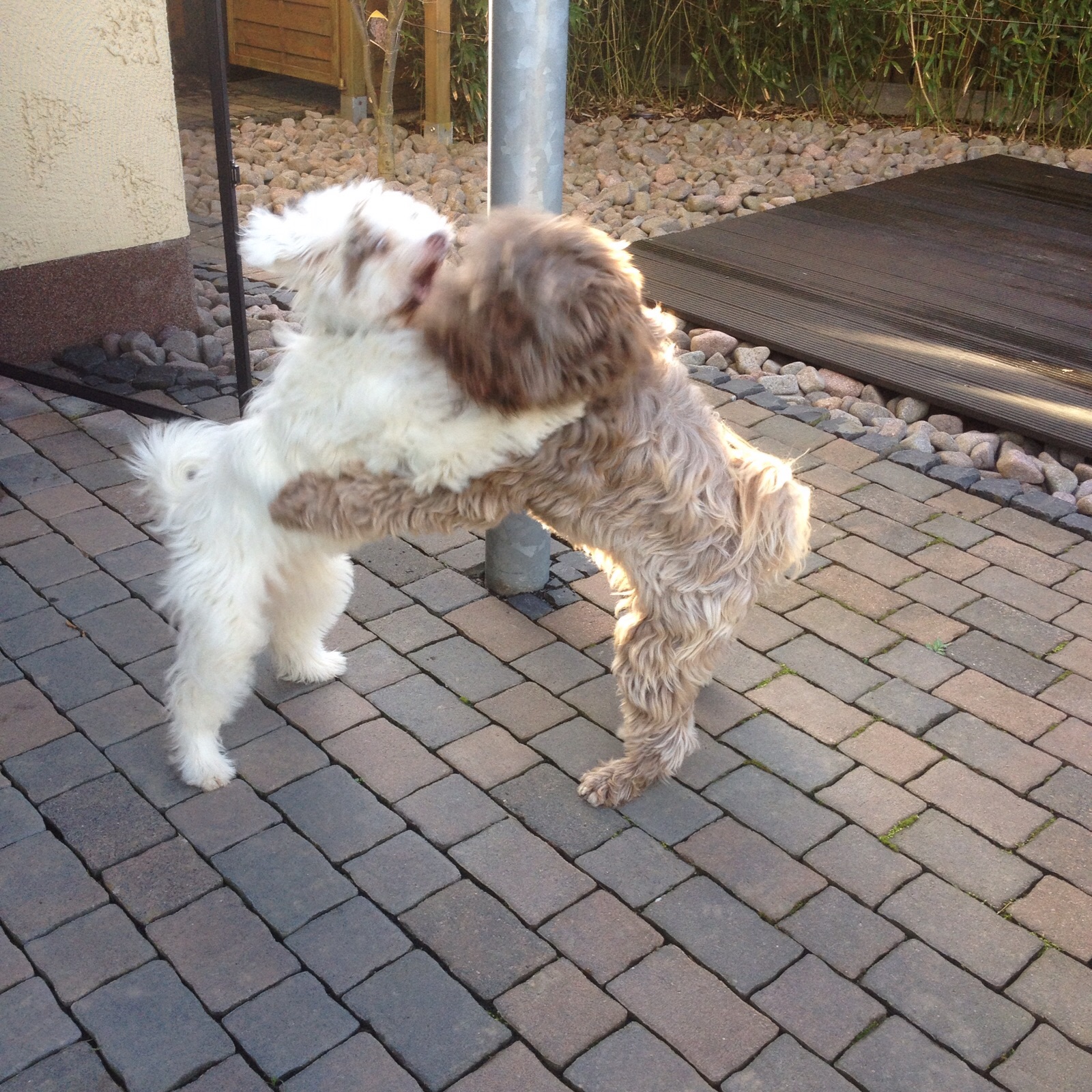 Kontrollierten Hundekontakte sorgten für rempelfreies Spielen – die 10 Minuten sollten dabei unbedingt eingehalten werden, damit der Welpe nicht erschöpft sondern angemessen trainiert wird.