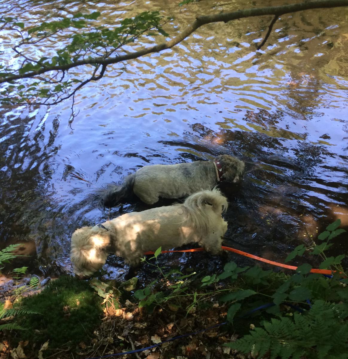 Sie geniessen die diversen neuen Düfte, die Abkühlung im Bach und die Wildtiere im Park. Es ist eine grosse Freude mit ihnen so neue Orte zu entdecken. Sogar in den Restaurant wissen sie sich zu benehmen, deshalb durften wir sie überall mitnehmen.